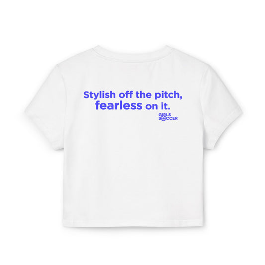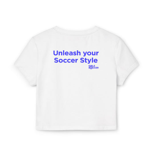 Backtalk Crop - Unleash your Soccer style (White/Blue Text)