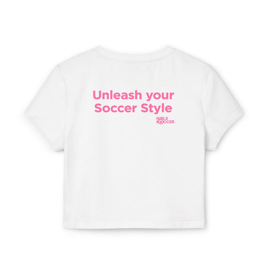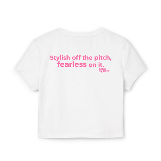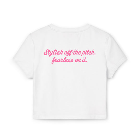 Backtalk Crop - Unleash your Soccer style (White/Pink Text)