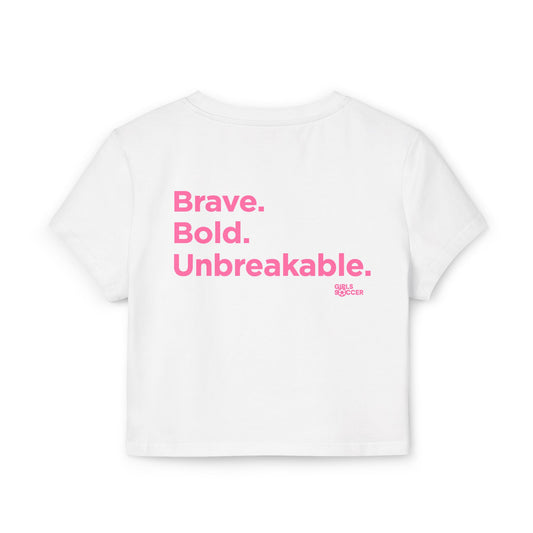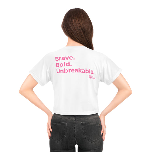 Backtalk Crop - Brave, Bold, Unbreakable (White/Pink Text)